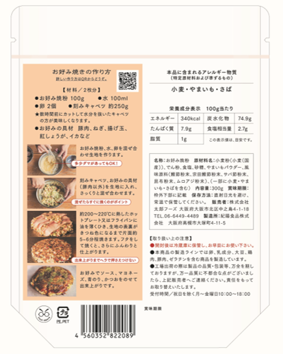 【太郎フーズ】くいだおれ太郎お好み焼き粉 ツイートする シェアする 販売価格: 660円(税込み) 会員価格 (税込み) 通常価格 (税込み) 在庫 商品コード 4560352822089 JANコード 4560352822089 数量 - + カートに入れる 入荷通知メールを希望する カテゴリー 大阪みやげ メーカー 太郎フーズ 【内容量】300g【お日持ち】製造日から365日【保存方法】直射日光を避け、常温で保管してください。【原材料】小麦粉(小麦(国産))、でん粉、食塩、砂糖、やまいもパウダー、風味原料(鰹節粉末、宗田鰹節粉末、サバ節粉末、昆布粉末、ムロアジ粉末)、(一部に小麦・やまいも・さばを含む)